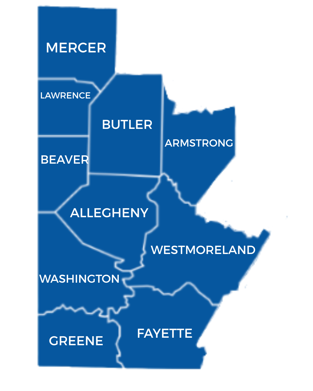 Service Areas: Serving the Allegheny county region with a focus on the Pittsburgh and Mon Valley areas, and surrounding counties including: Washington, Westmoreland, Fayette, Greene, Beaver, Butler, Armstrong, Lawrence, and Mercer. Contact us for additional locations.